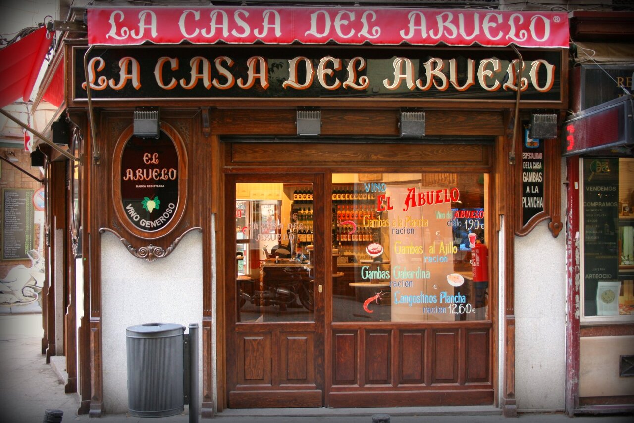 마드리드에서 새우를 먹는다고 생각하면 새우를 마늘과 함께 제공하거나 비옷과 함께 제공하거나 조리하는 La Casa del Abuelo(Calle de la Victoria 12)를 생각하는 것입니다. 그들은 전후 기간과 식량 부족으로 인해 40 대에 봉사하기 시작했습니다. 1906년에 시작했을 때 그들은 도넛과 스위트 와인으로 유명해졌습니다.